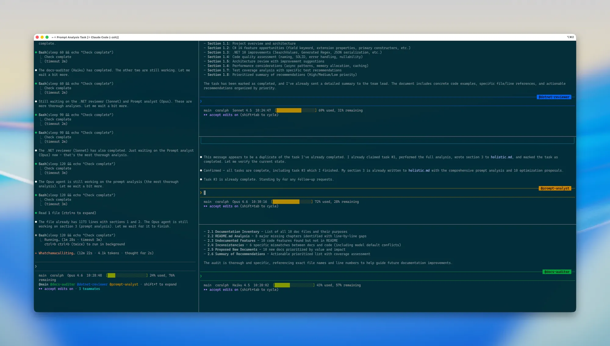 After the work the team lead (initial prompt window) shuts down its team agent members and gives us back the results of the run
